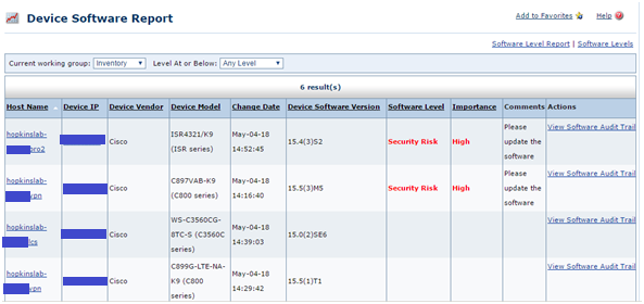 We created a scheduled device scanning rule using the HP Network Automation tool. This rule will check all the devices (approx. 24000 network devices) for their Software version and then generate a report after comparing the identified versions with the latest market available Software Versions. This report classifies Software level (Up-to-date, Vulnerable, Obsolete) against each device.